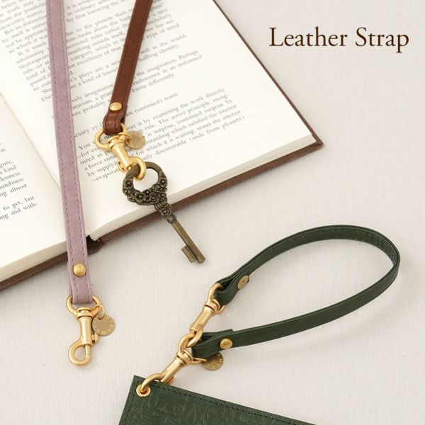 二枚の革を丁寧に縫い合わせた、丈夫なレザーストラップです。両端に付いたフックで、パスケースなどに取り付けられます。HIRAMEKI.の人気シリーズと同じ革を使用しており、色を揃えてコーディネートをお楽しみいただけます。