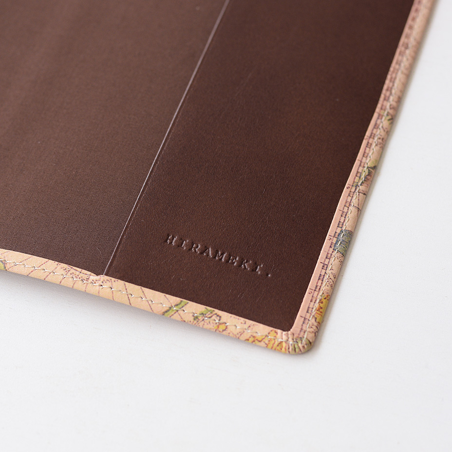 内側全面に綿素材の裏地を丁寧に縫い合わせているので、革カバーにありがちな、本への色移りの心配もありません。
