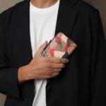 カードの右下角を引っ掛けて挟む新しいスタイルのカードホルダー。ポケット幅にとらわれず、快適に出し入れできます。