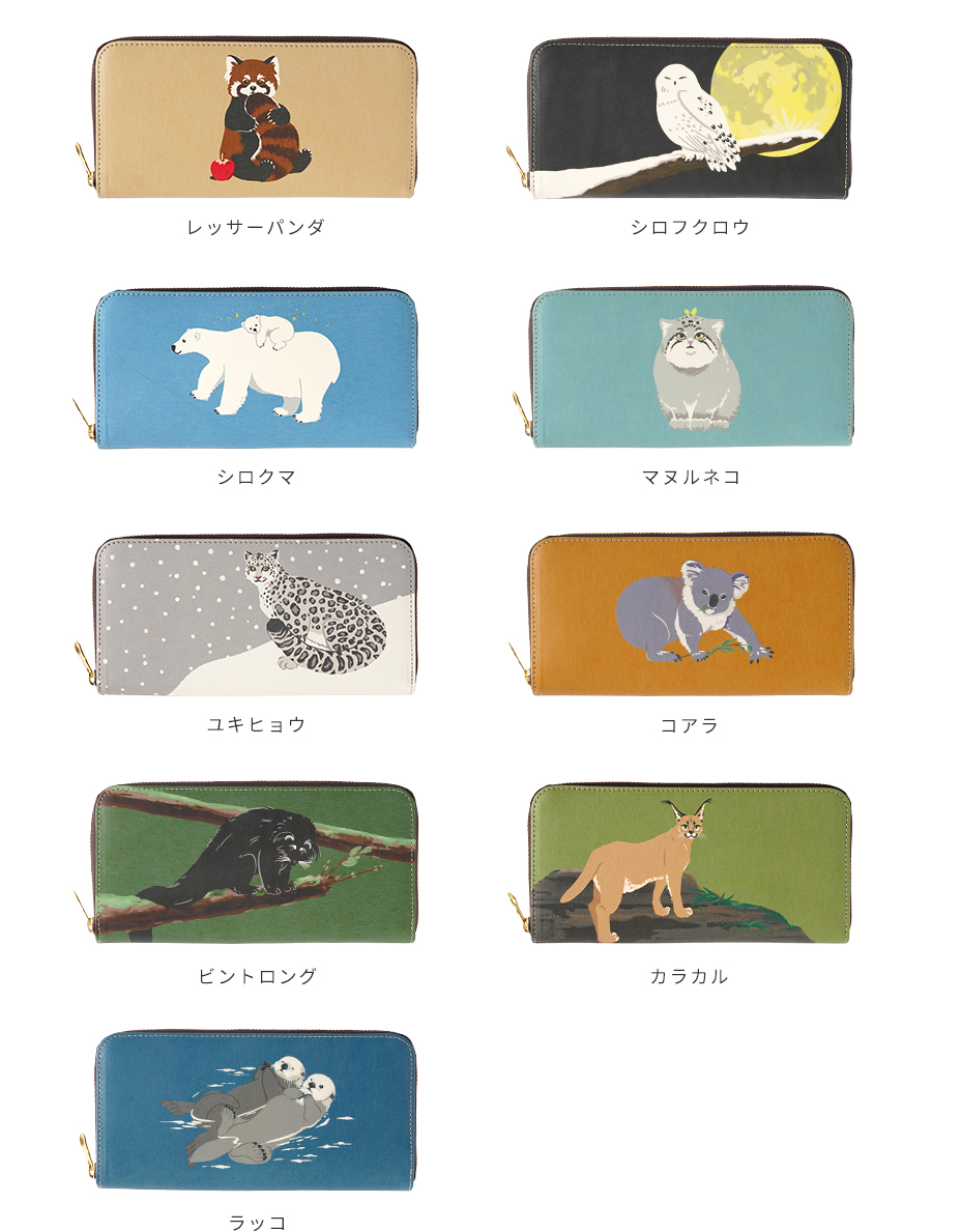 大好きな動物と一緒におでかけが楽しめるアートレザーのコンパクトな長財布です。内側の小銭入れからファスナーを無くした新仕様で、小さくても使いやすいお財布に仕上げました。