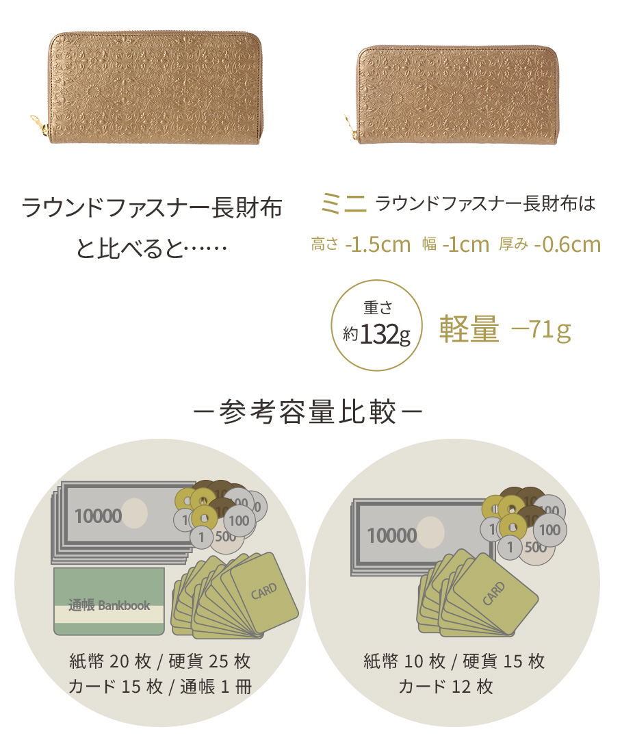 コンパクトな「ミニラウンドファスナー長財布」はこちら▶