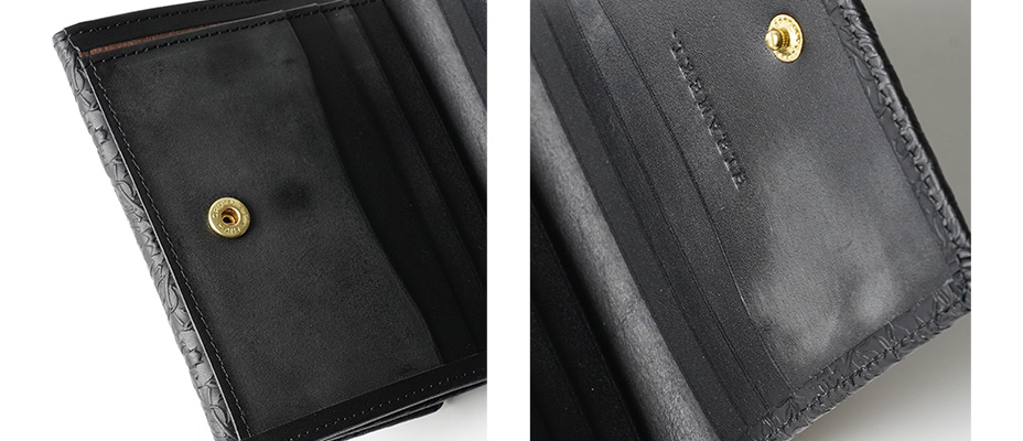 ファスナー小銭入れの両脇と、カードポケット段の両背面には幅広のフリーポケットがあり、レシートやチケットなども分けて管理できます。