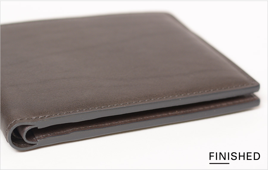 そうすることで、余計な線をなくし、すっきりとした薄い財布が出来上がる。