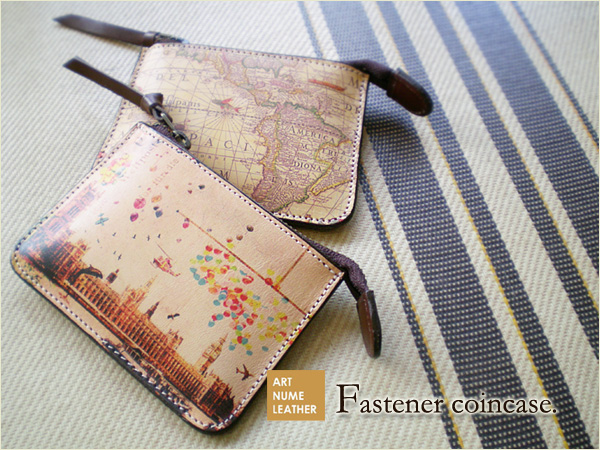 アートヌメレザー|ファスナーコインケース(小銭入れ)【アンティークマップ】