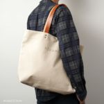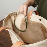 ・帆布、牛革ともに天然素材の性質上、色移り・色落ち・水染の可能性があります。もし水分が付着した場合は、すぐに乾いた柔らかい布でお拭き取りください。