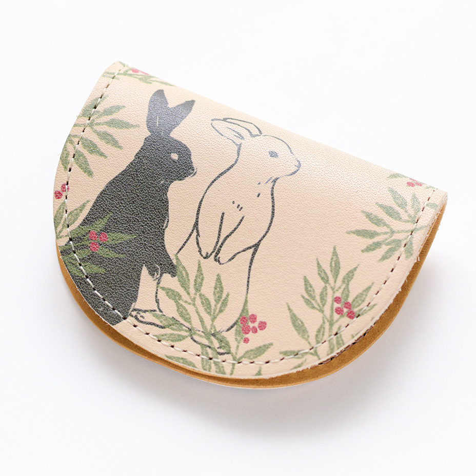 白いうさぎと黒いうさぎが森の中で仲良く寄り添う様子を水墨画のイメージで描いたデザイン。赤い南天の実がアクセント。南天には「福をなす」「良い家庭」「愛が深まる」などの幸せな意味合いがあり、お祝いギフトにもピッタリ。