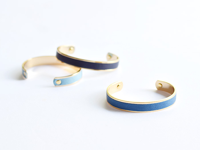 ・こちらのバングルは厳選された天然皮革を用い、染色加工を施し製造されていますが、天然皮革の性質上色落ち、染みの可能性があります。雨・汗等水分には細心のご注意をお願いいたします。もし水分が付着した場合は、すぐに乾いた柔らかい布でお拭き取り下さいませ。