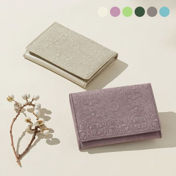 ウィリアム・モリスの美しい植物模様を革に型押しした、カードケース(名刺入れ)です。洗練されたモリスのデザインと、それを引き立てるスリムなフォルムが、新たな出会いのシーンを華やかに演出します。名刺入れとしてはもちろん、お財布に入りきらないサブカード類の収納ケースとしても、使い勝手の良いアイテムです。