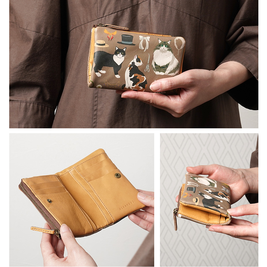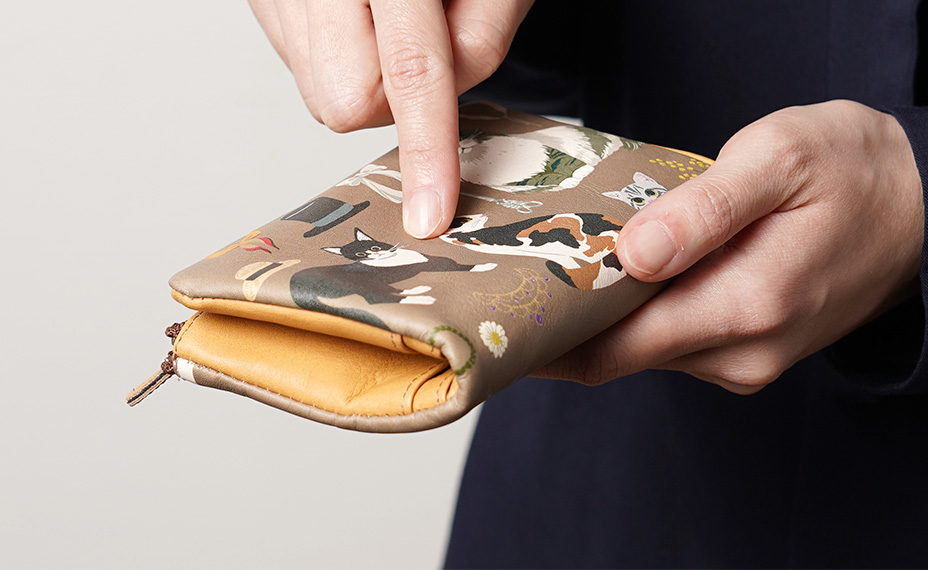 小柄なフォルムに、お札や小銭、たくさんのカードを収納できます。