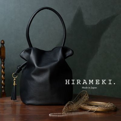 商品を一週間連続で使用した感想です。 いままでは小さめのショルダーバッグを使っていましたが、 最近はエコバッグ、手袋、マイボトル、消毒ジェルと持ち物が増え、 もう少し収納力のあるバッグが欲しいと探していたところ、 Hiramekiさんのクリスマスコレクションが目にとまりました。 普段あまり黒のバッグ買わないのですが、今回の山猫ホテルというコンセプトに惹かれて購入しました。 このバッグのいいところはなんといっても軽いことです! 普通このサイズのバッグは600グラム以上のものが多いですが、こちらは400グラム未満と、 中身をいろいろ詰めても余計に重さを感じることはありません。 大きさについては、モデルさんが華奢なせいか、私はウェブサイトの写真より小さいと感じました。 A4サイズのクリアファイルがぎり入らないようなサイズです。 でも底が楕円の形になっていますので、書類以外でしたら、結構たくさん入ります。 また口裏のキラキラの部分と、猫のオブジェがポイントになっていて、 真っ黒でも華やかさがあると思います。 使用している革も、まだ新しい今のうちはマットな質感ですが、 使い込みにつれ艶感がでることを期待しています。 私は朝出勤の時にフラットの形にして、帰りはドローストリングを絞ってフォームチェンジを楽しんでいます。 ちょっと気になる点は、 冬の厚いコートの上に、このバッグのコードがちょっとずれ落ちしやすいかなと感じました。 とくになで肩ではありませんが、コードの断面がまるいのと関係しているかもしれません。 でもトータルですごく満足したお買い物で、とてもオススメです。