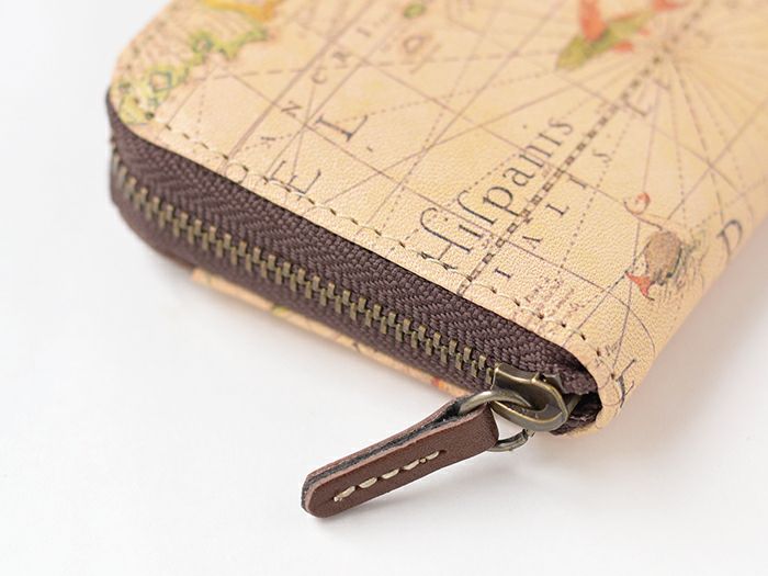 アートヌメレザー|ファスナーウォレット【アンティークマップ】