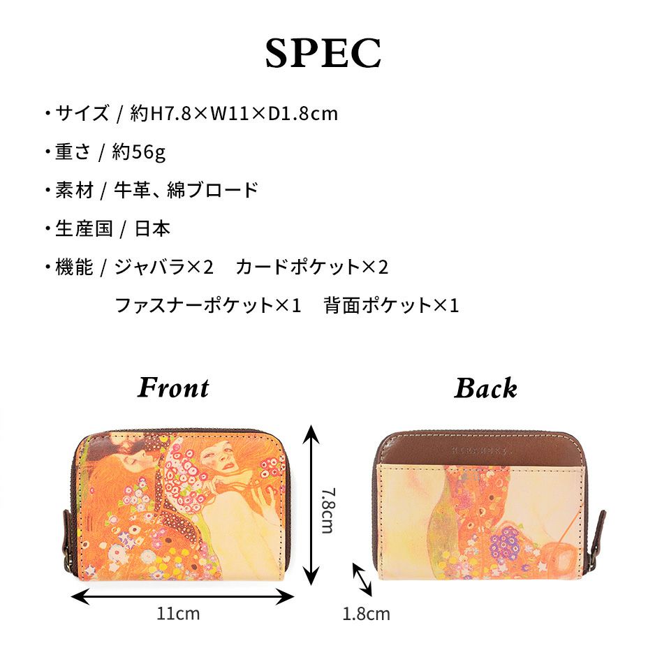 アートヌメレザー|ファスナーコインケース(小銭入れ)【クリムト3】